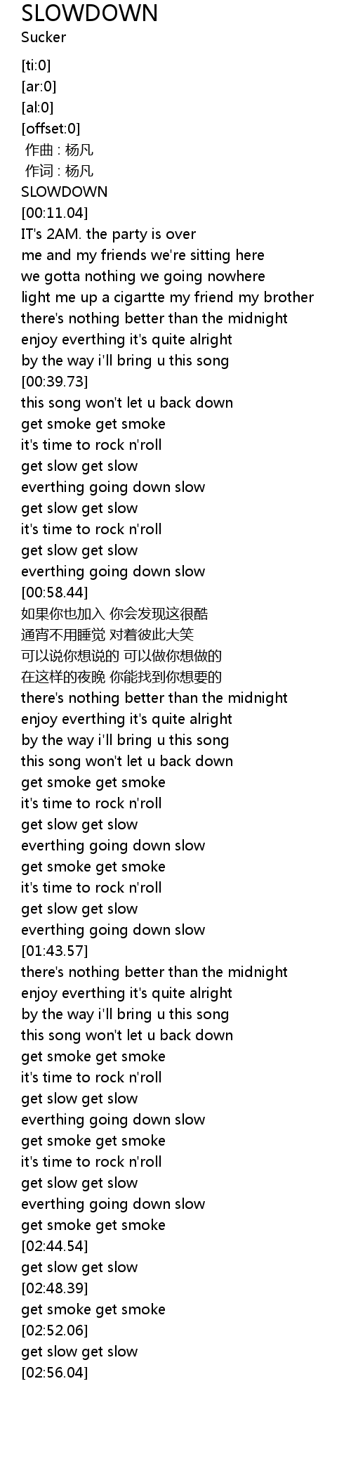 | [00:00.00] | SLOWDOWN |