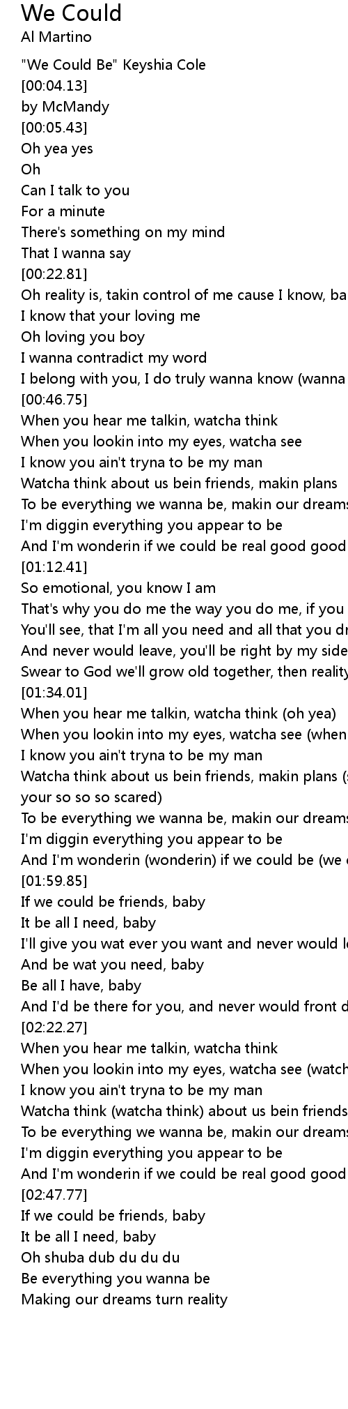 Watcha think about us bein friends, makin plans (sometimes I think your so so so scared) |