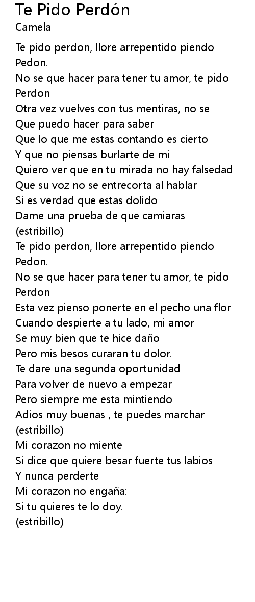 | Te pido perdon, llore arrepentido piendo | |