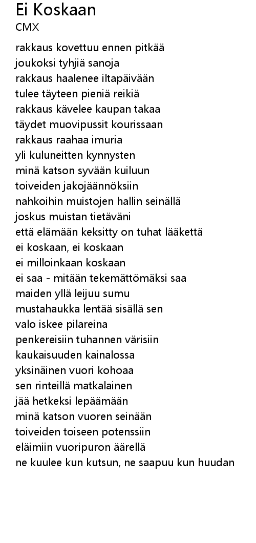 | ne kuulee kun kutsun, ne saapuu kun huudan |