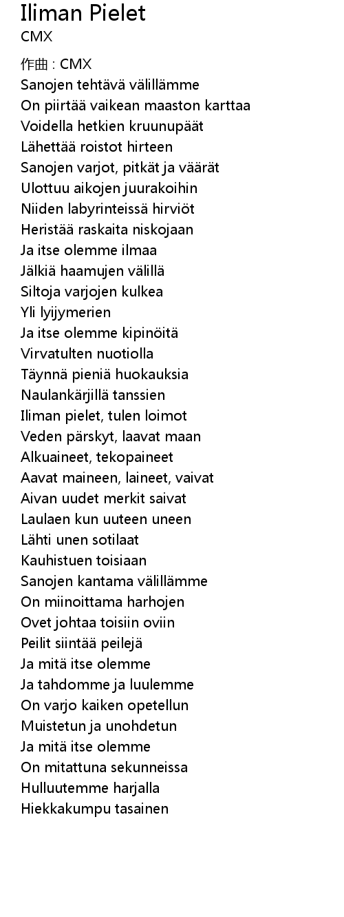 | Ja itse olemme ilmaa | |