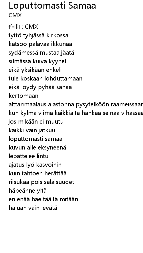 | Song | Loputtomasti Samaa |