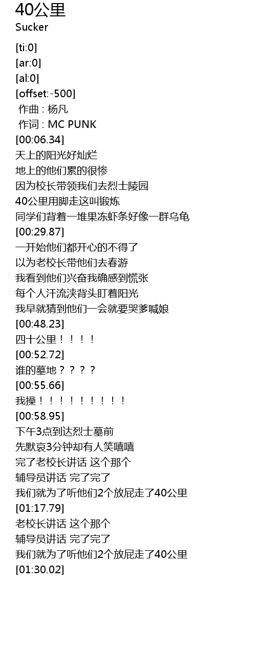| [00:01.00] | 作词 : MC PUNK |