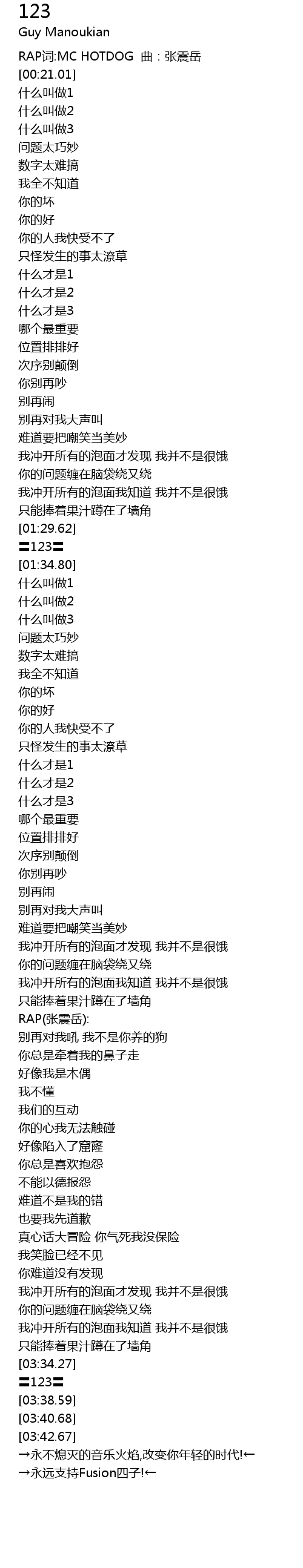 | [03:36.64] | 〓123〓 |