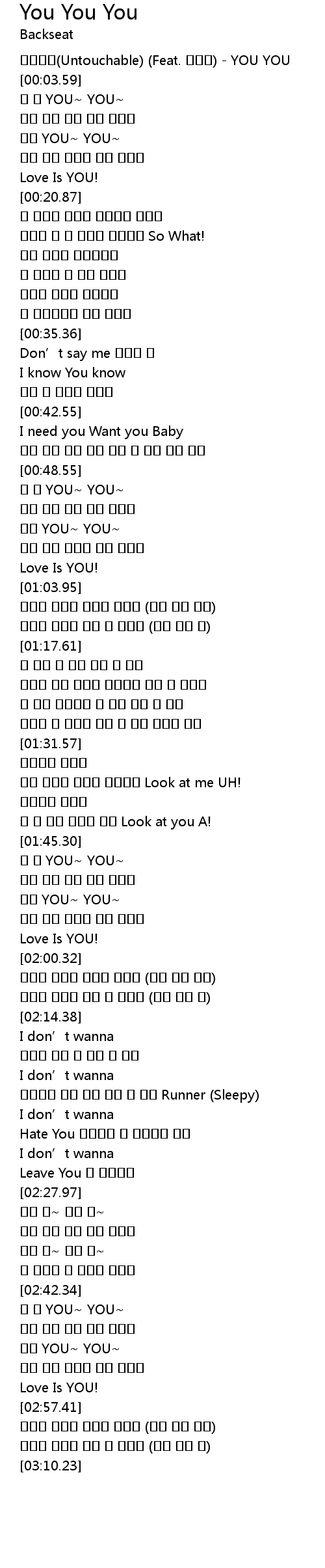 | [02:49.69] | 알아 YOU~ YOU~ |