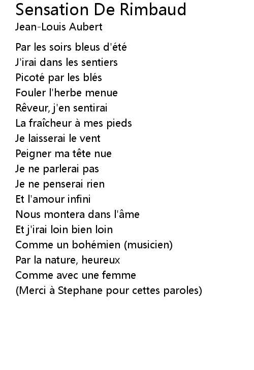 | Song | Sensation De Rimbaud |