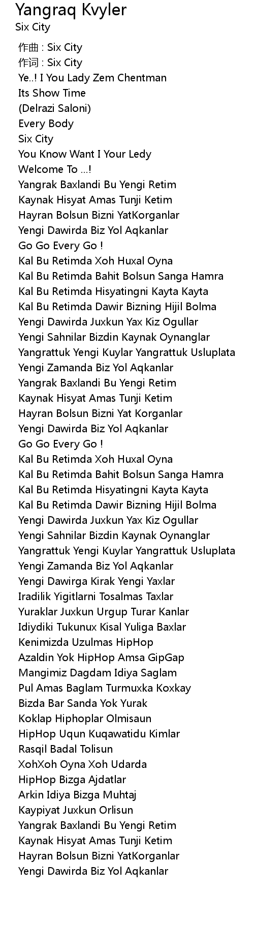| [00:00.000] | zuò qǔ : Six City |
