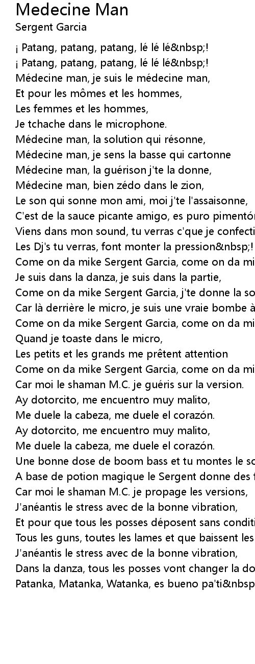 | Mé decine man, la gué rison j' te la donne, | |