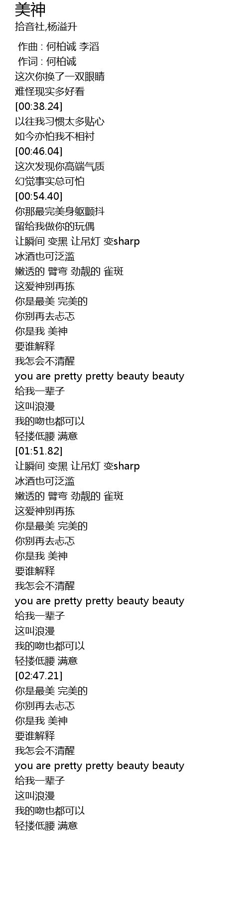 | [03:24.82] | 你是我 美神 |