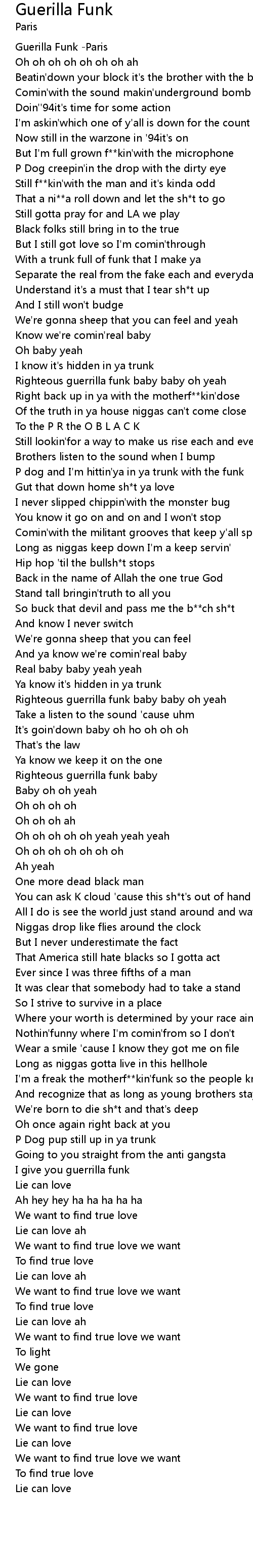 Righteous guerrilla funk baby baby oh yeah |