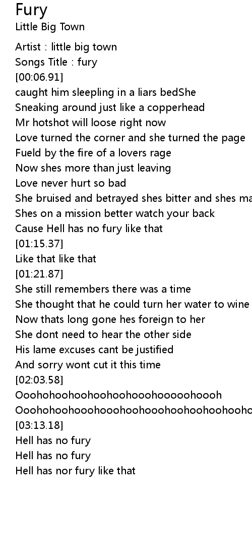 | [03:59.41] | Hell has no fury |
