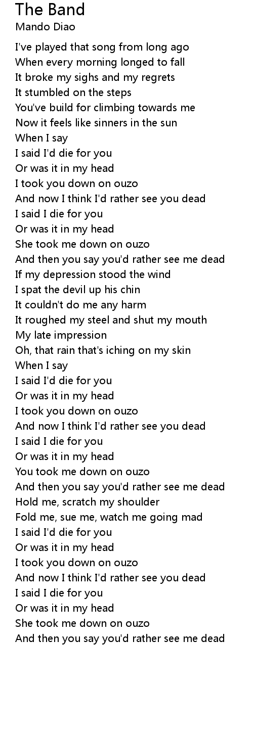 And now I think I'd rather see you dead |