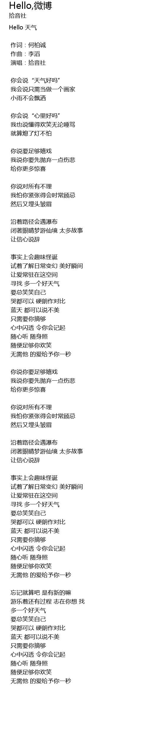 | Song | Hello,微博 |