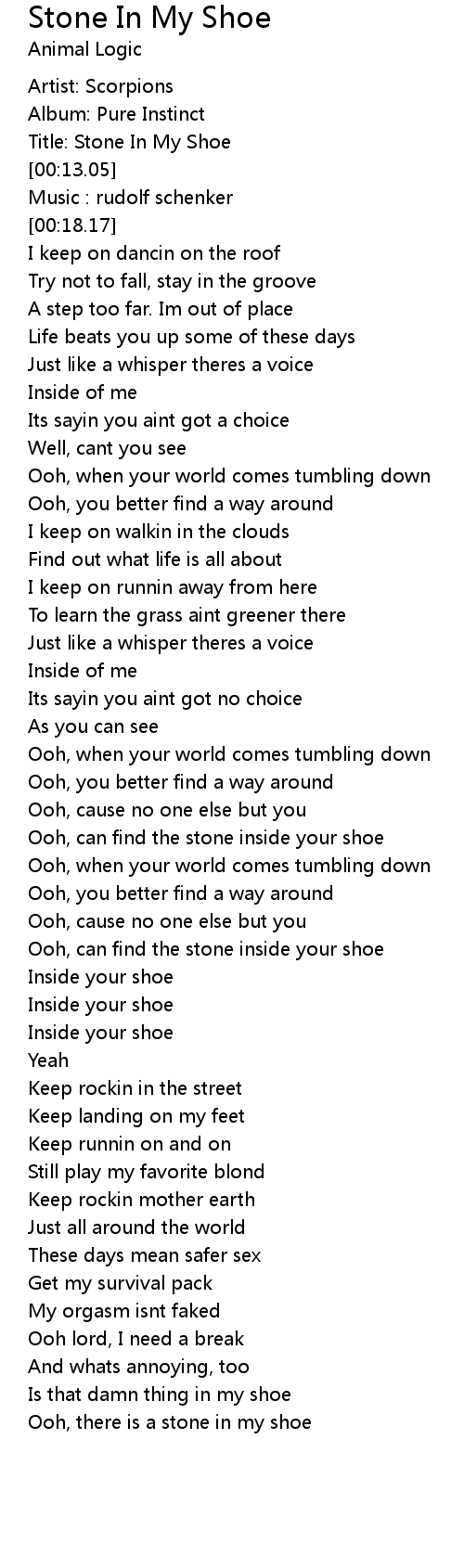 Ooh, there is a stone in my shoe |