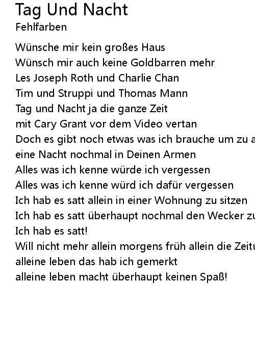 | Will nicht mehr allein morgens früh allein die Zeitungen lesen | |