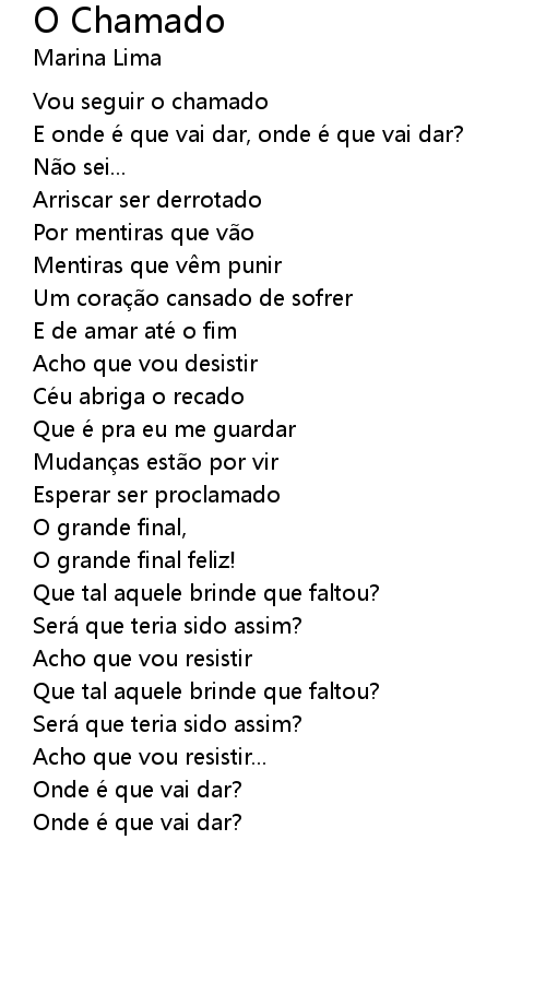 | Song | O Chamado |