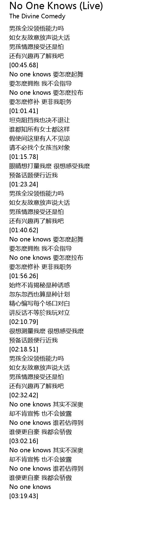 | [01:49.63] | No one knows 要怎麽拉布 |