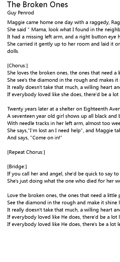 Love the broken ones, the ones that need a little patchin' up |