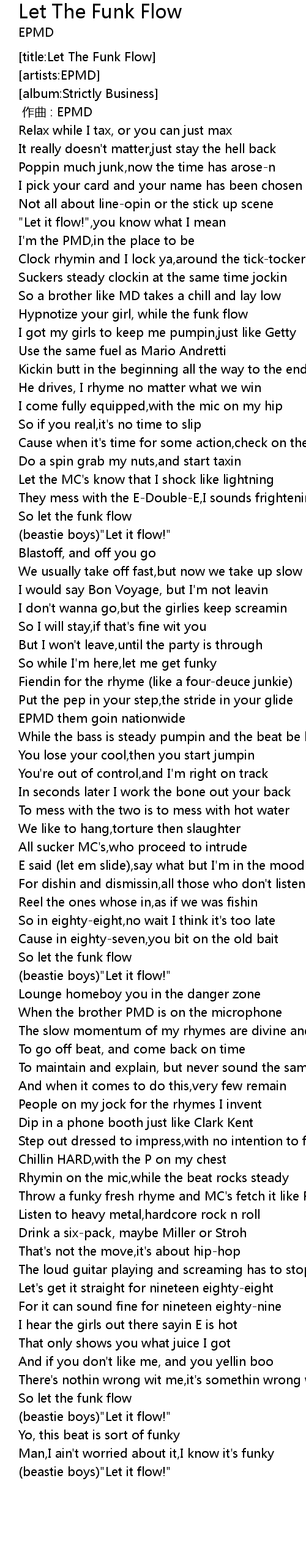 | [00:55:00] | Hypnotize your girl, while the funk flow |