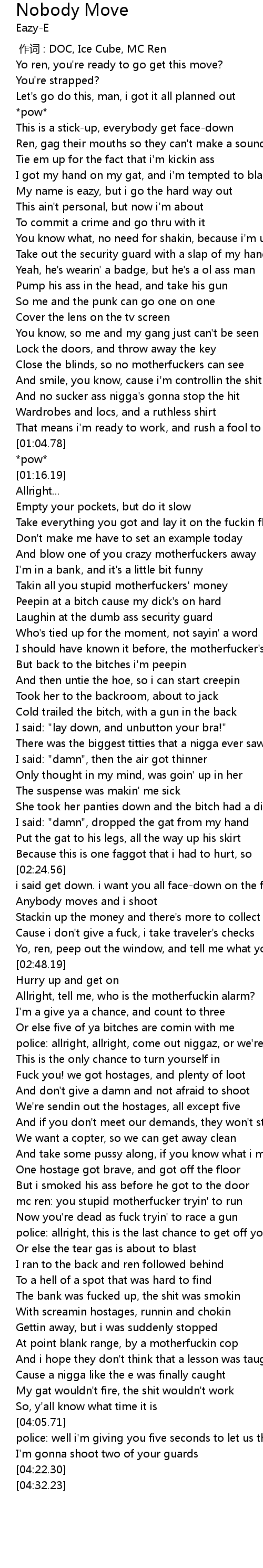 | [03:27.98] | mc ren: you stupid motherfucker tryin' to run |