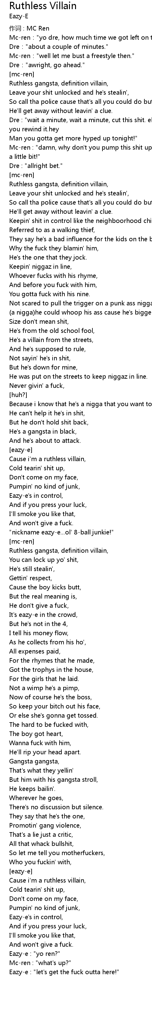 | 作词 : MC Ren | |