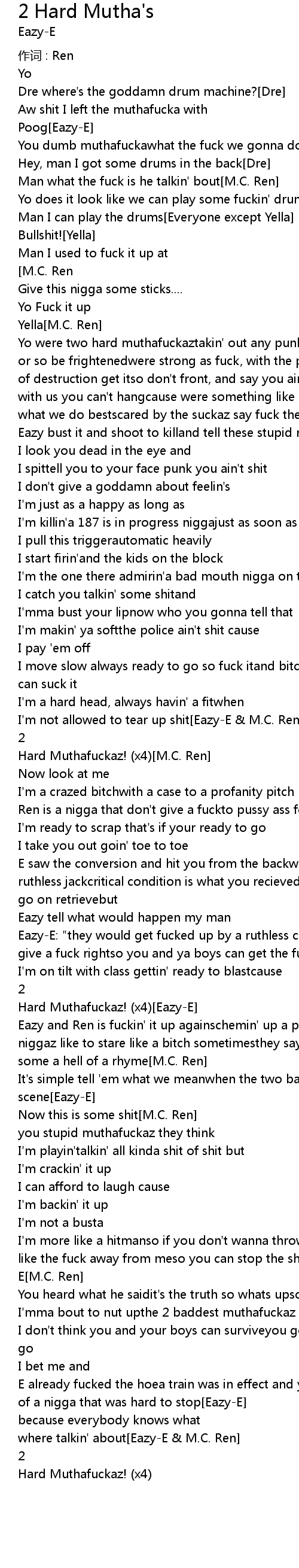 | Hard Muthafuckaz! (x4)[M.C. Ren] | |