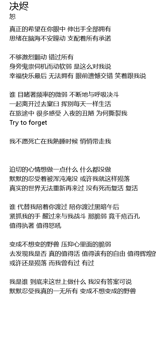| 默默忍受我真的一无所有 变成不想变成的野兽 |