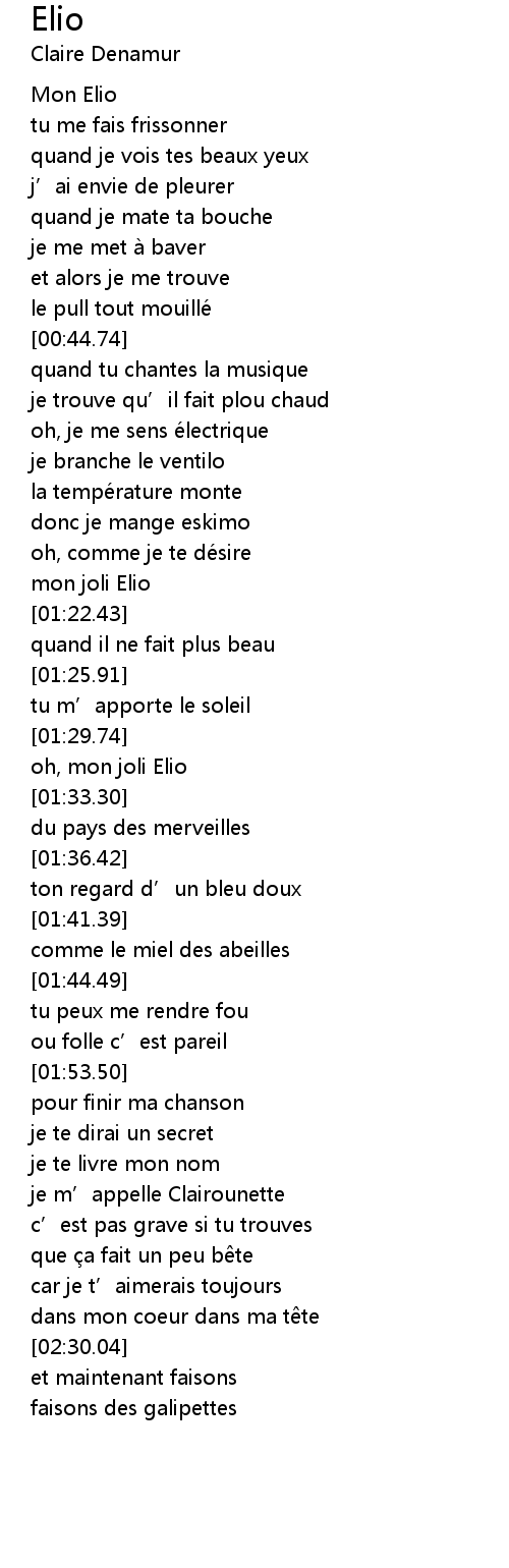 | [01:30.49] | oh, mon joli Elio |