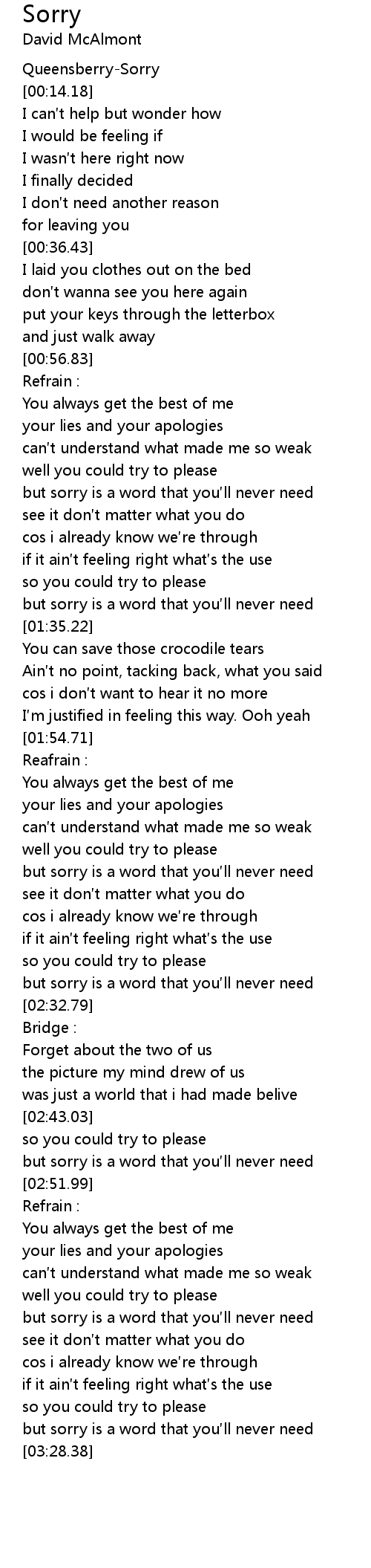 | [02:26.80] | but sorry is a word that you ll never need |