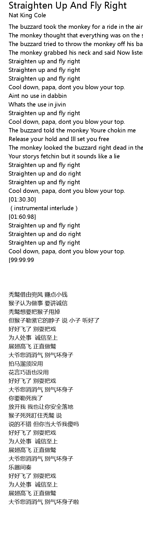 | [00:30.60] | Straighten up and fly right |