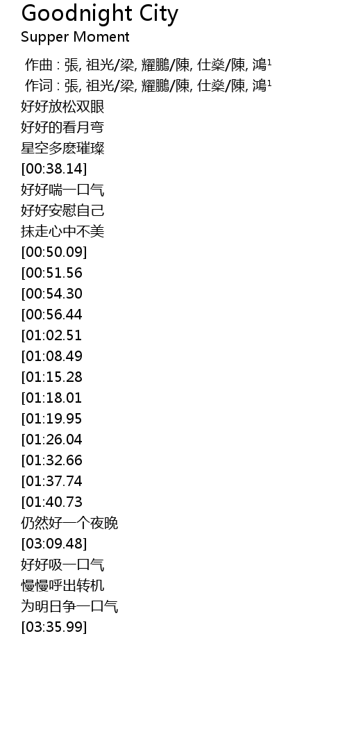 | [02:37.70][01:15.28] | Goodnight City |