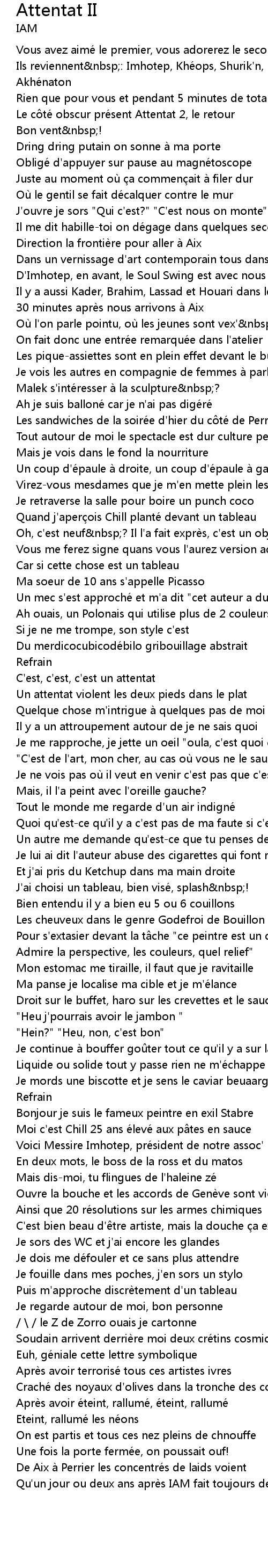| Qu'un jour ou deux ans après IAM fait toujours des attentats |