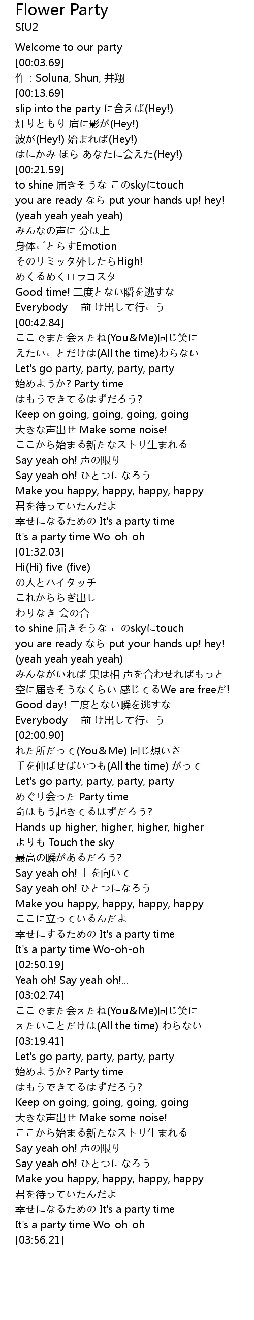| [03:45.84] | xìng It' s a party time |