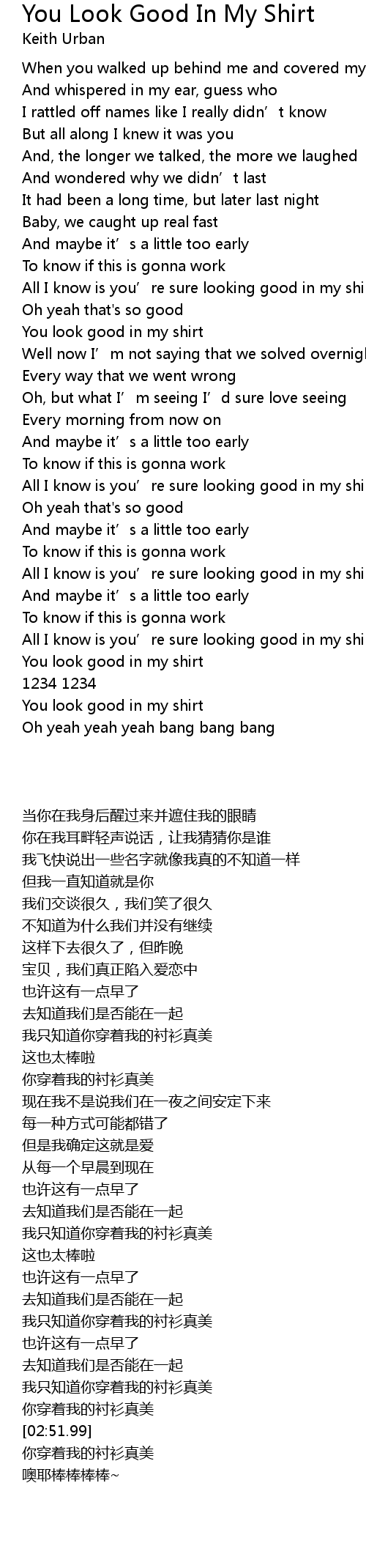 | [02:24.48] | All I know is you' re sure looking good in my shirt |