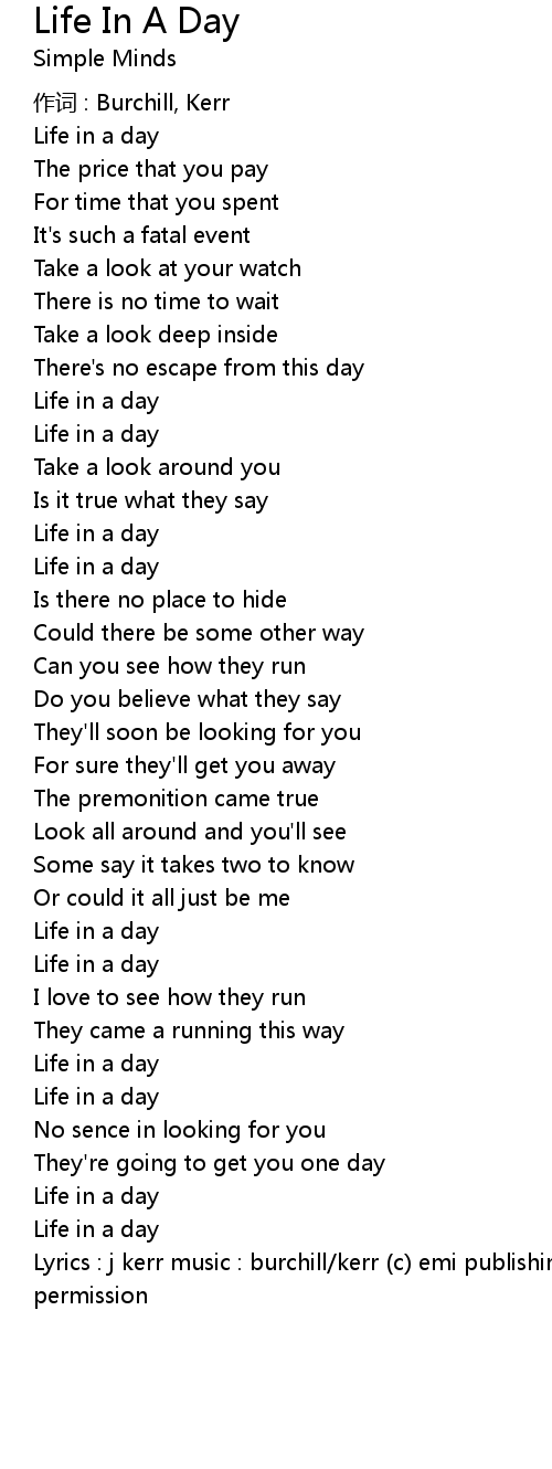 | Song | Life In A Day |