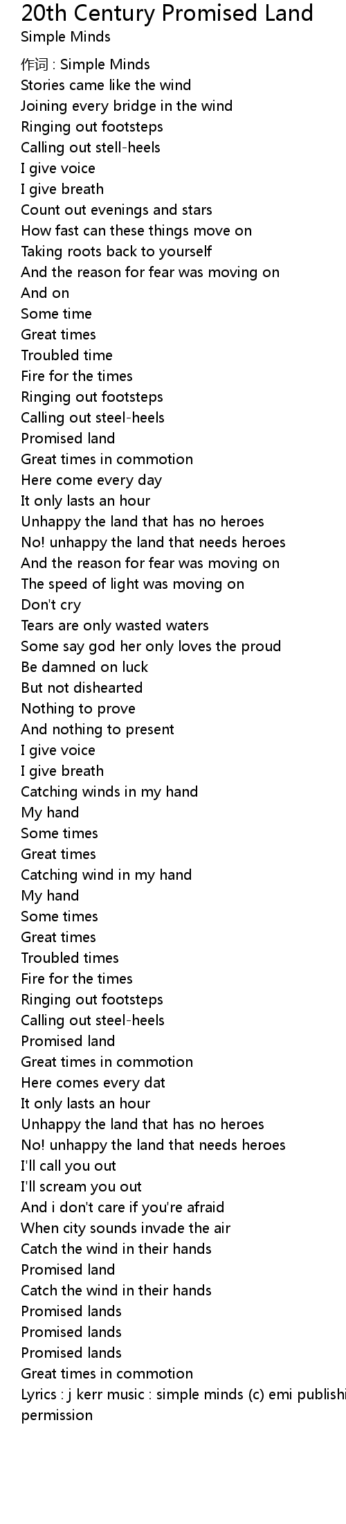 | Lyrics : j kerr music : simple minds c emi publishing ltd reproduced without permission |