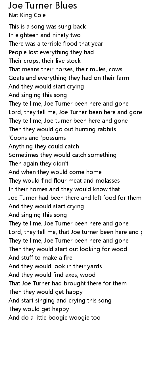 Lord, they tell me, that Joe turner been here and gone |