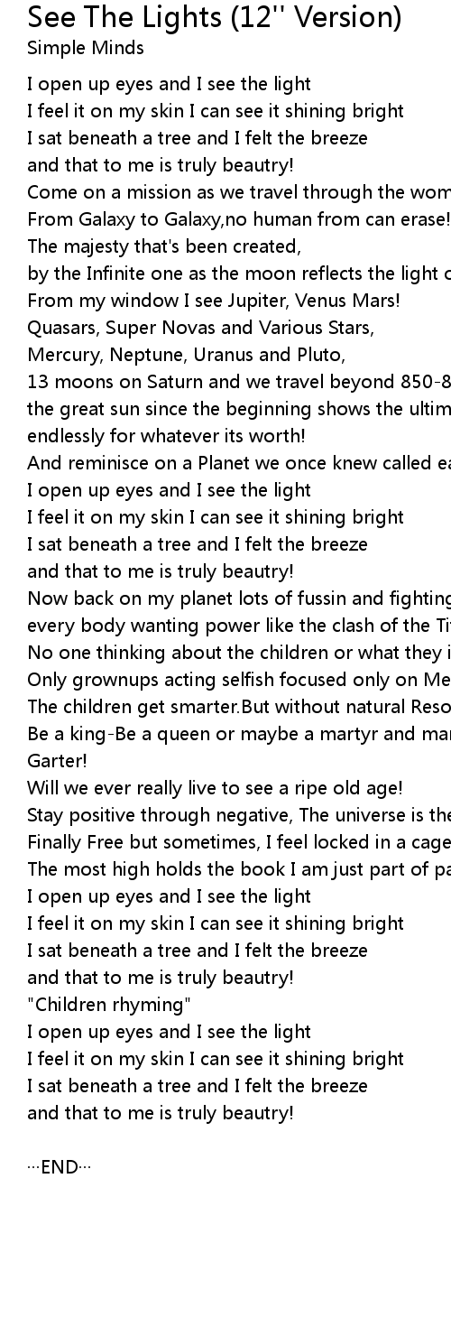 | I open up eyes and I see the light | |