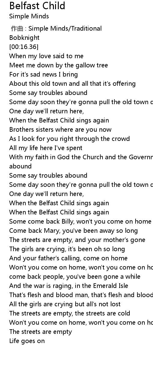 | [00:00.00] | 作曲 : Simple Minds/Traditional |