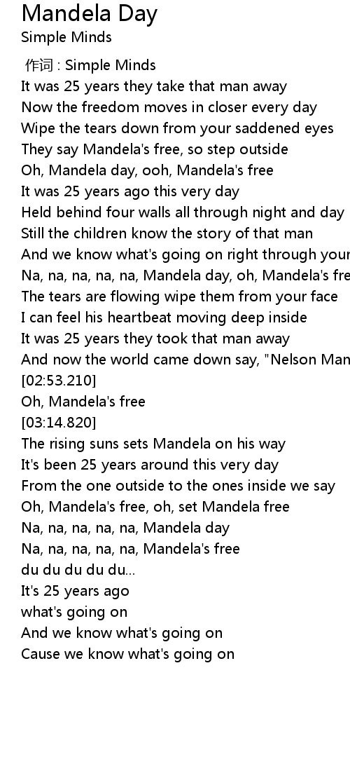 | [02:07.390] | Na, na, na, na, na, Mandela day, oh, Mandela' s free |