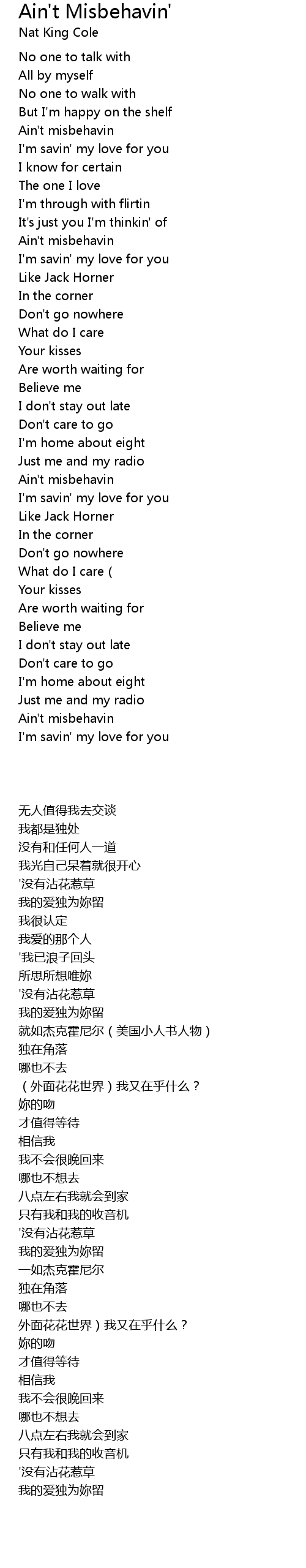 | [01:53.031] | Ain't misbehavin |