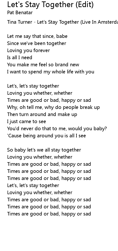 Let's, let's stay together |