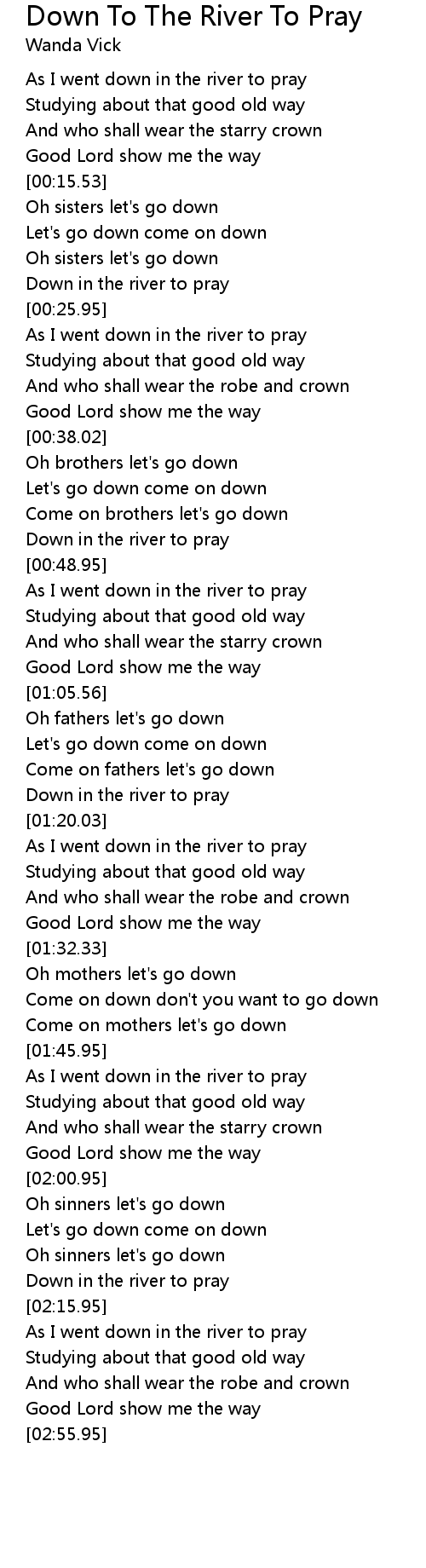 Down in the river to pray |