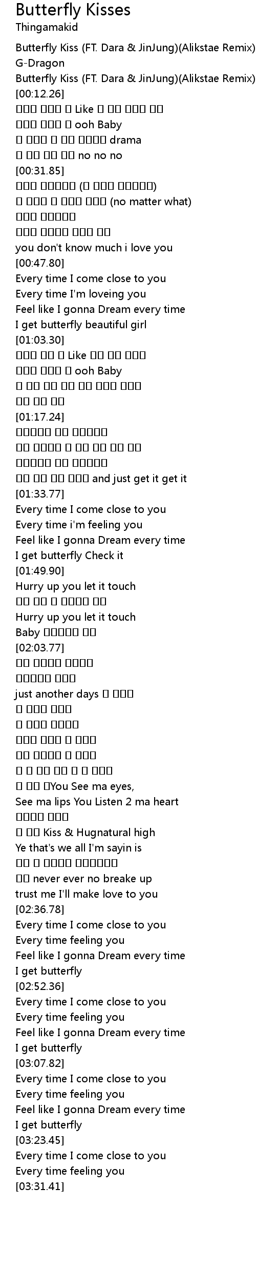 | [00:01.65] | Butterfly Kiss FT. Dara JinJung Alikstae Remix |