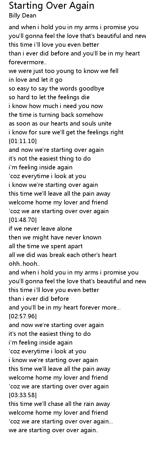 Starting Over Again Lyrics