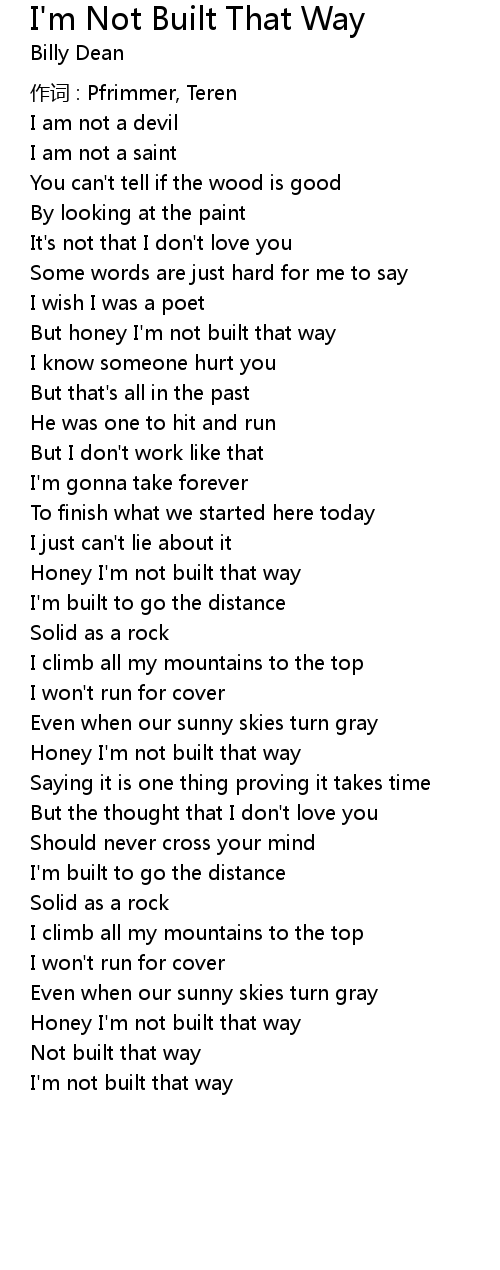 | But honey I'm not built that way | |