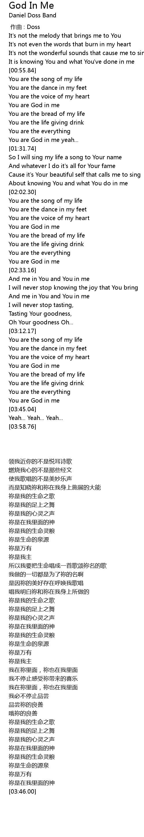 | [03:24.39] | You are God in me |