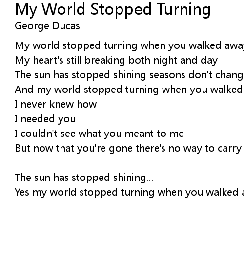| Yes my world stopped turning when you walked away |