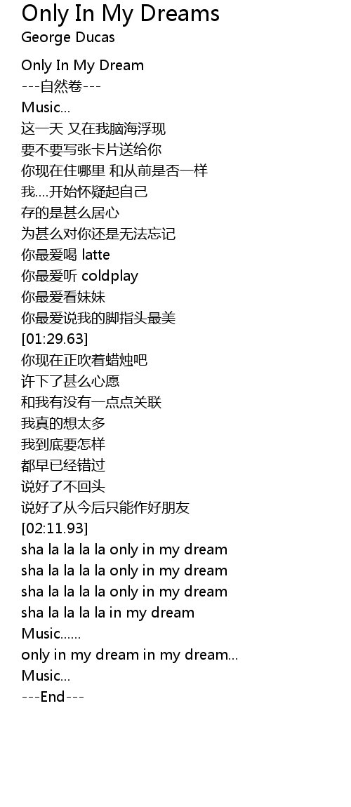| [02:28.81] | sha la la la la only in my dream |