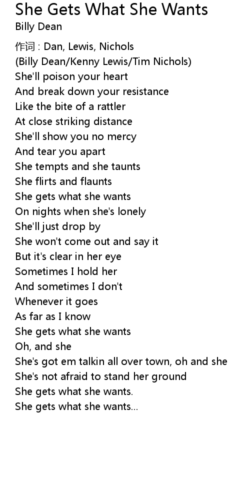 | Song | She Gets What She Wants |